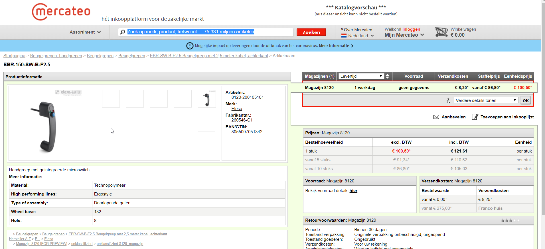 Mercateo kent een breed assortiment variërend van kantoorartikelen, technische handel, electrotechniek etc. waar afnemers hun inkoopproces maximaal efficiënt kunnen inregelen. Ook interesse om zichtbaar te zijn op Mercateo of een ander inkoopplatform om daarmee nieuwe klanten of nieuwe marktsegmenten te bereiken? Neem contact op met één van onze experts!