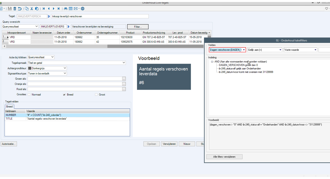 Geïnteresseerd in de achterliggende query voor de Live tegels, stuur dan een kort berichtje via deze link. We nemen dan contact met je op hoe we de query, batch-, procesinrichting en Live tegels kunnen uitwisselen.